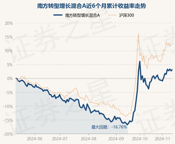 证券之星消息,11月13日,南方转型增长混合A最新单位净值为1.9699元,累计净值为1.9699元,较前一交易日上涨0.48%。历史数据显示该基金近1个月上涨4.66%,近3个月上涨17.04%,近6个月上涨3.16%,近1年上涨10.17%。该基金近6个月的累计收益率走势如下图: