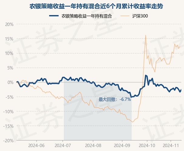 证券之星消息,11月13日,农银策略收益一年持有混合最新单位净值为0.6285元,累计净值为0.6285元,较前一交易日上涨0.74%。历史数据显示该基金近1个月下跌3.08%,近3个月下跌1.07%,近6个月下跌2.66%,近1年上涨7.38%。该基金近6个月的累计收益率走势如下图:
