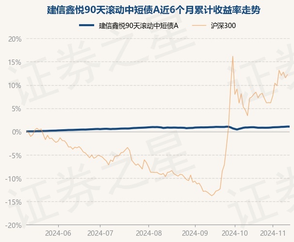 证券之星消息,11月13日,建信鑫悦90天滚动中短债A最新单位净值为1.1127元,累计净值为1.1127元,较前一交易日下跌0.01%。历史数据显示该基金近1个月上涨0.38%,近3个月上涨0.25%,近6个月上涨1.06%,近1年上涨3.03%。该基金近6个月的累计收益率走势如下图: