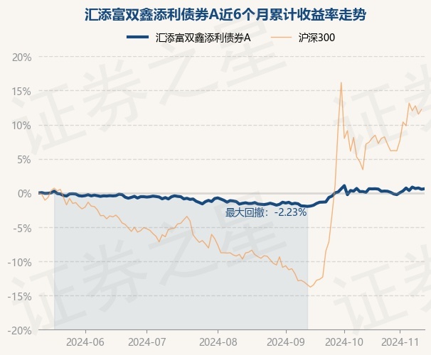 证券之星消息,11月13日,汇添富双鑫添利债券A最新单位净值为1.1272元,累计净值为1.4202元,较前一交易日上涨0.07%。历史数据显示该基金近1个月上涨0.36%,近3个月上涨2.17%,近6个月上涨0.62%,近1年上涨6.14%。该基金近6个月的累计收益率走势如下图: