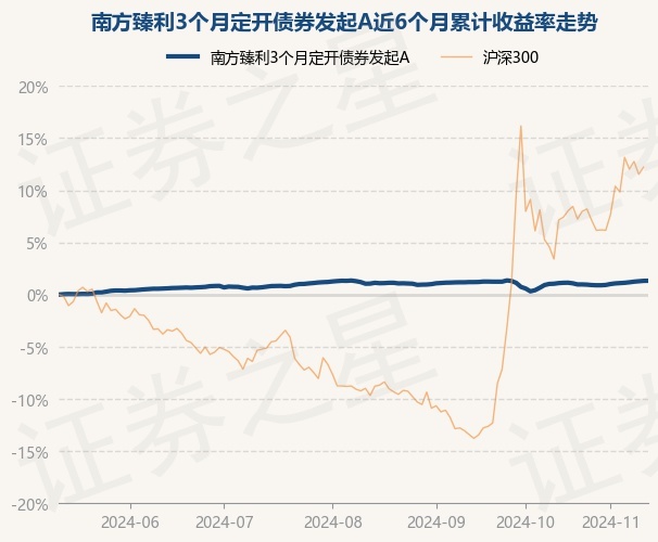 证券之星消息,11月13日,南方臻利3个月定开债券发起A最新单位净值为1.0297元,累计净值为1.1183元,较前一交易日上涨0.01%。历史数据显示该基金近1个月上涨0.66%,近3个月上涨0.27%,近6个月上涨1.33%,近1年上涨4.58%。该基金近6个月的累计收益率走势如下图:
