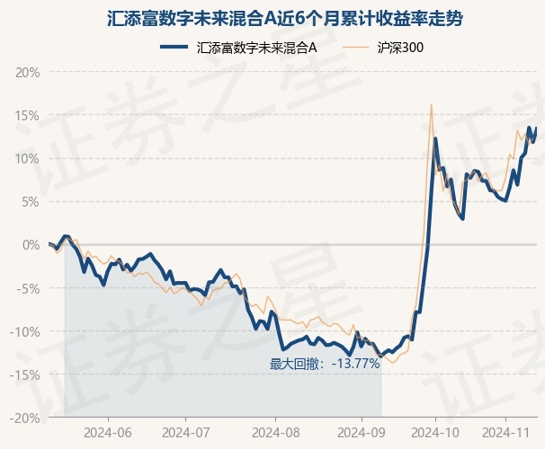证券之星消息,11月13日,汇添富数字未来混合A最新单位净值为0.6689元,累计净值为0.6689元,较前一交易日上涨1.38%。历史数据显示该基金近1个月上涨6.26%,近3个月上涨26.93%,近6个月上涨13.33%,近1年上涨12.25%。该基金近6个月的累计收益率走势如下图: