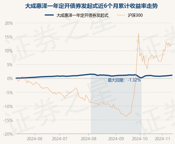 证券之星消息,11月13日,大成惠泽一年定开债券发起式最新单位净值为1.0262元,累计净值为1.1204元,较前一交易日上涨0.0%。历史数据显示该基金近1个月上涨0.55%,近3个月下跌0.01%,近6个月上涨7.66%,近1年上涨4.31%。该基金近6个月的累计收益率走势如下图: