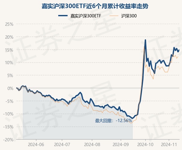 证券之星消息,11月13日,嘉实沪深300ETF最新单位净值为4.307元,累计净值为1.9419元,较前一交易日上涨0.63%。历史数据显示该基金近1个月上涨5.86%,近3个月上涨23.68%,近6个月上涨14.79%,近1年上涨17.51%。该基金近6个月的累计收益率走势如下图: