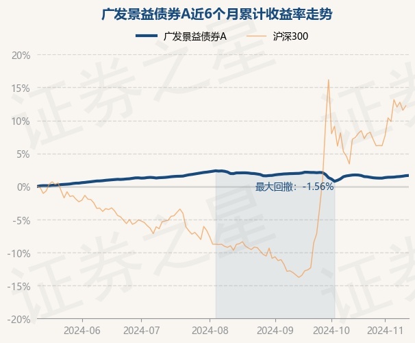 证券之星消息,11月13日,广发景益债券A最新单位净值为1.084元,累计净值为1.084元,较前一交易日上涨0.03%。历史数据显示该基金近1个月上涨0.51%,近3个月下跌0.28%,近6个月上涨1.66%,近1年上涨5.63%。该基金近6个月的累计收益率走势如下图: