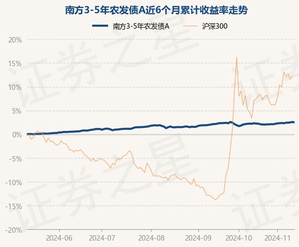 证券之星消息,11月13日,南方3-5年农发债A最新单位净值为1.0891元,累计净值为1.2421元,较前一交易日下跌0.07%。历史数据显示该基金近1个月上涨0.37%,近3个月上涨1.0%,近6个月上涨2.5%,近1年上涨5.45%。该基金近6个月的累计收益率走势如下图: