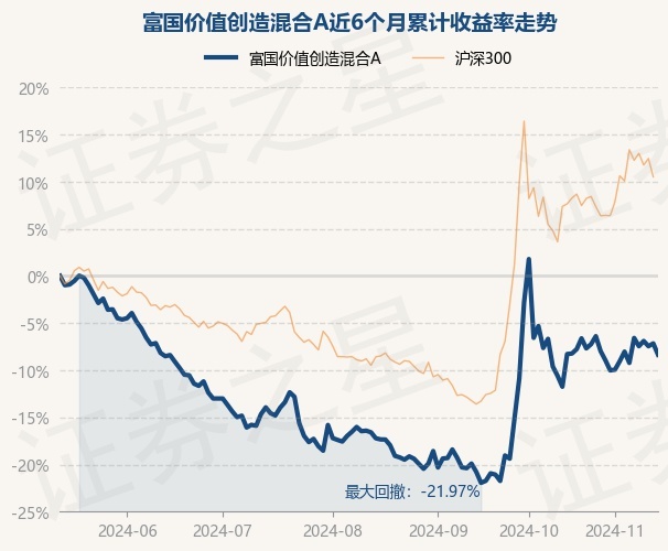 证券之星消息,11月14日,富国价值创造混合A最新单位净值为0.6824元,累计净值为0.6824元,较前一交易日下跌1.29%。历史数据显示该基金近1个月下跌1.8%,近3个月上涨10.71%,近6个月下跌8.35%,近1年下跌1.91%。该基金近6个月的累计收益率走势如下图: