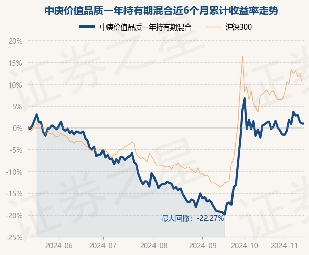 证券之星消息,11月14日,中庚价值品质一年持有期混合最新单位净值为1.4921元,累计净值为1.4921元,较前一交易日上涨0.0%。历史数据显示该基金近1个月下跌3.09%,近3个月上涨14.28%,近6个月下跌1.67%,近1年上涨2.75%。该基金近6个月的累计收益率走势如下图: