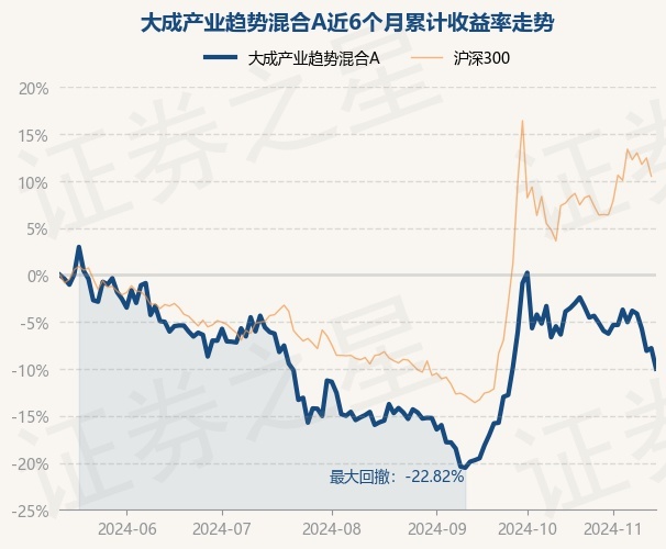 证券之星消息,11月14日,大成产业趋势混合A最新单位净值为1.3868元,累计净值为1.3868元,较前一交易日下跌2.37%。历史数据显示该基金近1个月下跌6.89%,近3个月上涨7.11%,近6个月下跌9.98%,近1年上涨8.01%。该基金近6个月的累计收益率走势如下图: