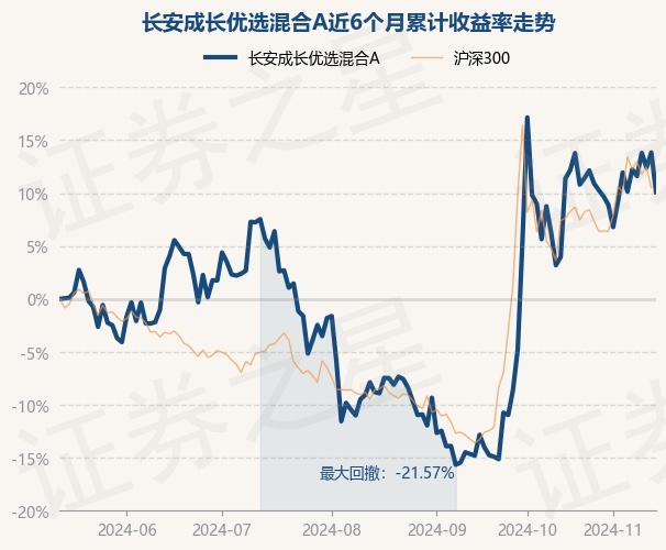 证券之星消息,11月14日,长安成长优选混合A最新单位净值为0.5594元,累计净值为0.5594元,较前一交易日下跌3.3%。历史数据显示该基金近1个月上涨1.21%,近3个月上涨20.69%,近6个月上涨10.07%,近1年上涨8.62%。该基金近6个月的累计收益率走势如下图: