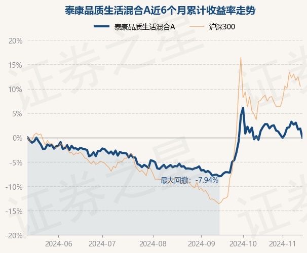 证券之星消息,11月14日,泰康品质生活混合A最新单位净值为1.1223元,累计净值为1.1223元,较前一交易日下跌1.85%。历史数据显示该基金近1个月下跌2.03%,近3个月上涨6.46%,近6个月下跌0.04%,近1年上涨9.45%。该基金近6个月的累计收益率走势如下图: