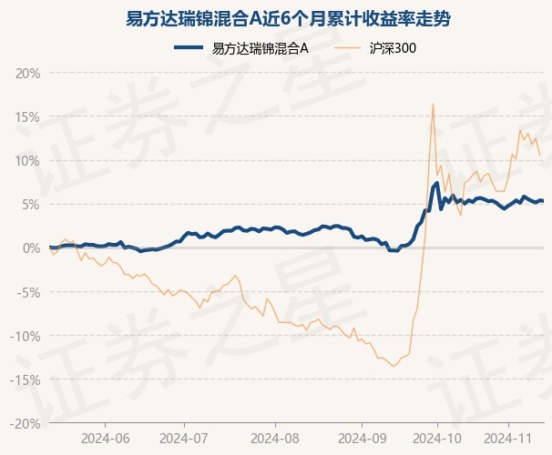 证券之星消息,11月14日,易方达瑞锦混合A最新单位净值为1.2477元,累计净值为1.2877元,较前一交易日下跌0.06%。历史数据显示该基金近1个月下跌0.6%,近3个月上涨3.53%,近6个月上涨5.29%,近1年上涨10.93%。该基金近6个月的累计收益率走势如下图: