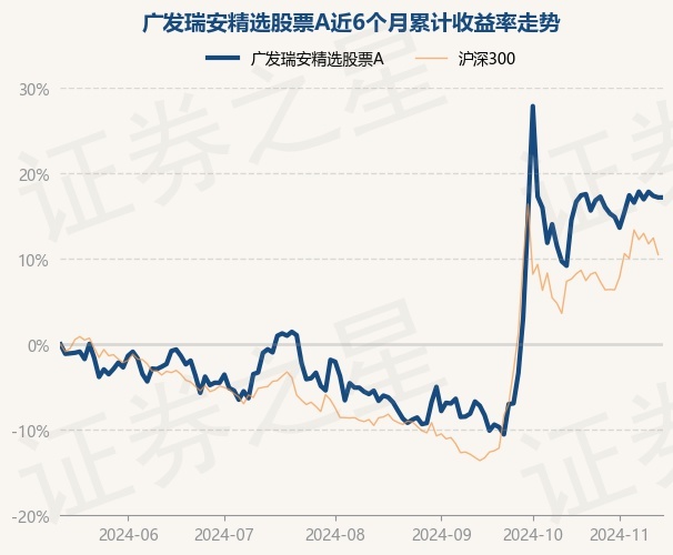 证券之星消息,11月14日,广发瑞安精选股票A最新单位净值为0.8351元,累计净值为0.8351元,较前一交易日上涨0.0%。历史数据显示该基金近1个月上涨1.04%,近3个月上涨23.41%,近6个月上涨15.25%,近1年上涨0.48%。该基金近6个月的累计收益率走势如下图: