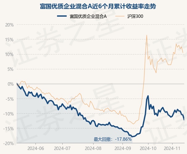 证券之星消息,11月14日,富国优质企业混合A最新单位净值为0.7517元,累计净值为0.7517元,较前一交易日下跌1.75%。历史数据显示该基金近1个月下跌4.88%,近3个月上涨2.17%,近6个月下跌12.12%,近1年上涨2.82%。该基金近6个月的累计收益率走势如下图: