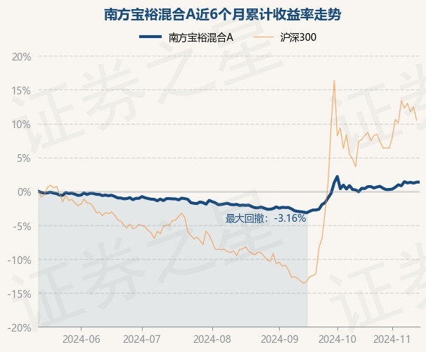证券之星消息,11月14日,南方宝裕混合A最新单位净值为1.0922元,累计净值为1.0922元,较前一交易日上涨0.0%。历史数据显示该基金近1个月上涨0.14%,近3个月上涨3.13%,近6个月上涨0.98%,近1年上涨6.11%。该基金近6个月的累计收益率走势如下图:
