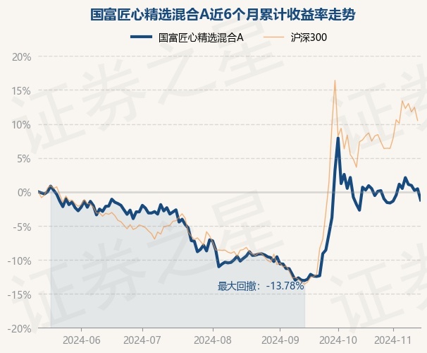 证券之星消息,11月14日,国富匠心精选混合A最新单位净值为0.9086元,累计净值为0.9086元,较前一交易日下跌1.65%。历史数据显示该基金近1个月下跌3.25%,近3个月上涨10.01%,近6个月下跌1.2%,近1年上涨8.44%。该基金近6个月的累计收益率走势如下图: