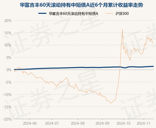 证券之星消息,11月14日,华富吉丰60天滚动持有中短债A最新单位净值为1.1288元,累计净值为1.1288元,较前一交易日上涨0.0%。历史数据显示该基金近1个月上涨0.23%,近3个月上涨0.44%,近6个月上涨1.29%,近1年上涨3.12%。该基金近6个月的累计收益率走势如下图:
