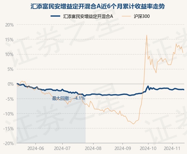 证券之星消息,11月14日,汇添富民安增益定开混合A最新单位净值为1.4114元,累计净值为1.4114元,较前一交易日下跌0.12%。历史数据显示该基金近1个月下跌0.6%,近3个月上涨1.85%,近6个月下跌2.03%,近1年上涨2.26%。该基金近6个月的累计收益率走势如下图: