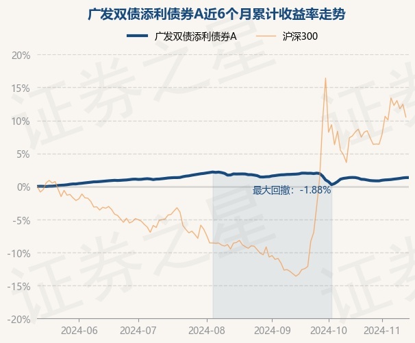 证券之星消息,11月14日,广发双债添利债券A最新单位净值为1.217元,累计净值为1.6399元,较前一交易日上涨0.01%。历史数据显示该基金近1个月上涨0.24%,近3个月下跌0.54%,近6个月上涨1.34%,近1年上涨5.17%。该基金近6个月的累计收益率走势如下图:
