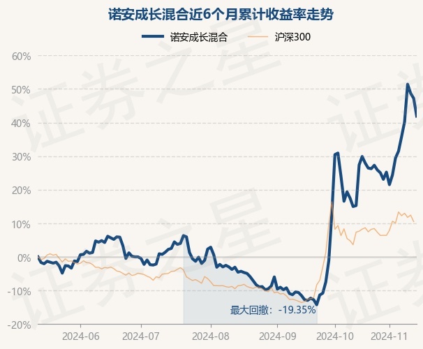 证券之星消息,11月14日,诺安成长混合最新单位净值为1.524元,累计净值为1.969元,较前一交易日下跌3.61%。历史数据显示该基金近1个月上涨18.88%,近3个月上涨48.68%,近6个月上涨41.9%,近1年上涨16.87%。该基金近6个月的累计收益率走势如下图: