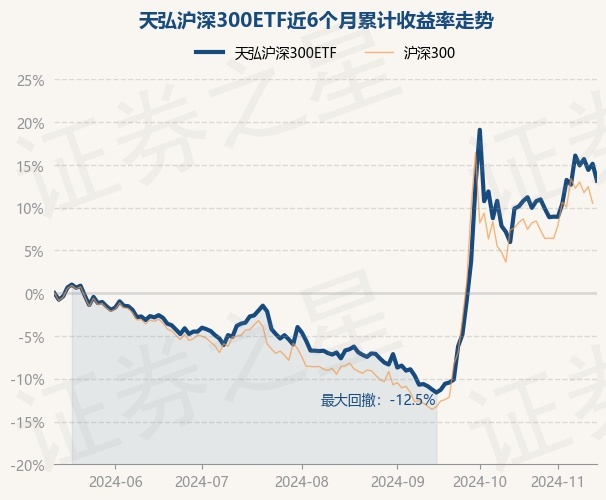 证券之星消息,11月14日,天弘沪深300ETF最新单位净值为1.1311元,累计净值为1.1311元,较前一交易日下跌1.72%。历史数据显示该基金近1个月上涨2.12%,近3个月上涨22.48%,近6个月上涨13.14%,近1年上涨15.58%。该基金近6个月的累计收益率走势如下图: