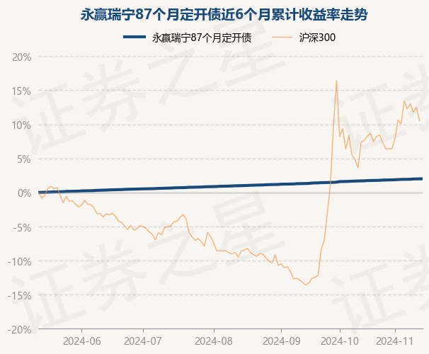 证券之星消息,11月14日,永赢瑞宁87个月定开债最新单位净值为1.0892元,累计净值为1.1712元,较前一交易日上涨0.01%。历史数据显示该基金近1个月上涨0.34%,近3个月上涨1.0%,近6个月上涨2.0%,近1年上涨3.9%。该基金近6个月的累计收益率走势如下图: