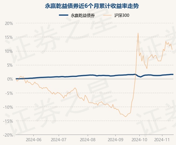 证券之星消息,11月14日,永赢乾益债券最新单位净值为1.0827元,累计净值为1.1167元,较前一交易日上涨0.0%。历史数据显示该基金近1个月上涨0.32%,近3个月上涨0.38%,近6个月上涨1.58%,近1年上涨4.51%。该基金近6个月的累计收益率走势如下图: