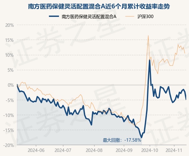 证券之星消息,11月14日,南方医药保健灵活配置混合A最新单位净值为2.067元,累计净值为2.282元,较前一交易日下跌2.5%。历史数据显示该基金近1个月下跌3.4%,近3个月上涨5.43%,近6个月下跌4.79%,近1年下跌7.14%。该基金近6个月的累计收益率走势如下图: