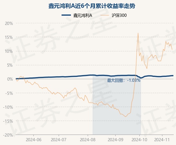 证券之星消息,11月14日,鑫元鸿利A最新单位净值为1.1132元,累计净值为1.5082元,较前一交易日上涨0.02%。历史数据显示该基金近1个月上涨0.31%,近3个月下跌0.09%,近6个月上涨1.14%,近1年上涨4.92%。该基金近6个月的累计收益率走势如下图: