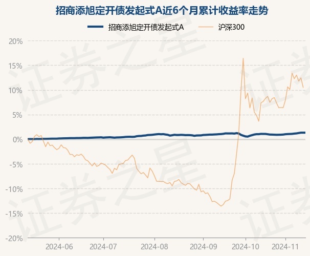 证券之星消息,11月14日,招商添旭定开债发起式A最新单位净值为1.0324元,累计净值为1.18元,较前一交易日上涨0.0%。历史数据显示该基金近1个月上涨0.37%,近3个月上涨0.43%,近6个月上涨1.32%,近1年上涨3.03%。该基金近6个月的累计收益率走势如下图: