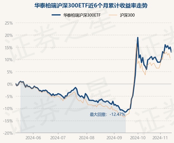 证券之星消息,11月14日,华泰柏瑞沪深300ETF最新单位净值为4.126元,累计净值为1.7787元,较前一交易日下跌1.73%。历史数据显示该基金近1个月上涨2.06%,近3个月上涨22.35%,近6个月上涨13.03%,近1年上涨15.39%。该基金近6个月的累计收益率走势如下图: