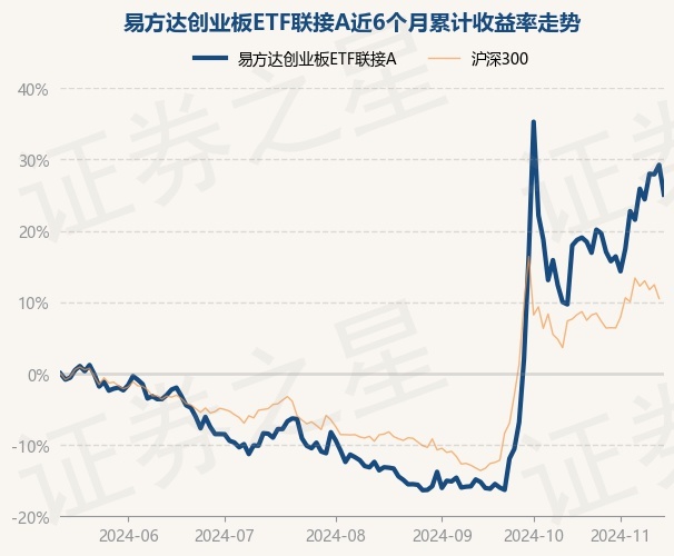 证券之星消息,11月14日,易方达创业板ETF联接A最新单位净值为2.3842元,累计净值为2.3842元,较前一交易日下跌3.22%。历史数据显示该基金近1个月上涨7.93%,近3个月上涨44.71%,近6个月上涨25.08%,近1年上涨15.87%。该基金近6个月的累计收益率走势如下图: