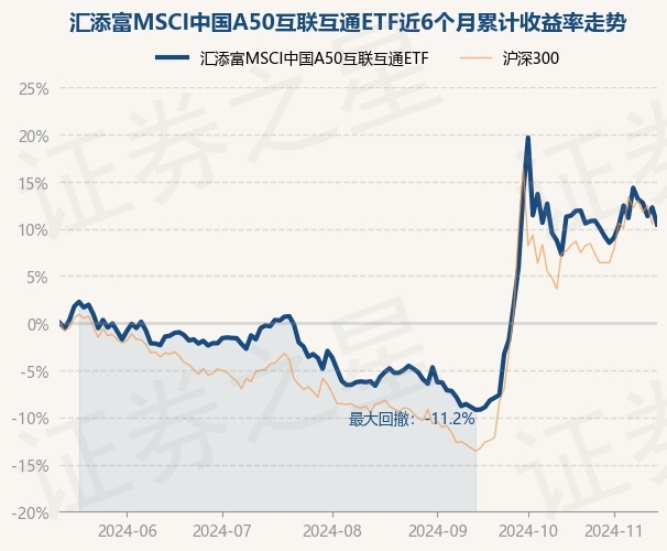 证券之星消息,11月14日,汇添富MSCI中国A50互联互通ETF最新单位净值为0.8384元,累计净值为0.8384元,较前一交易日下跌1.61%。历史数据显示该基金近1个月下跌1.95%,近3个月上涨18.33%,近6个月上涨10.46%,近1年上涨17.05%。该基金近6个月的累计收益率走势如下图: