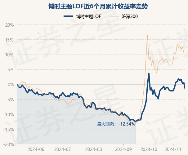 证券之星消息,11月14日,博时主题LOF最新单位净值为1.029元,累计净值为5.724元,较前一交易日下跌2.0%。历史数据显示该基金近1个月上涨0.39%,近3个月上涨7.86%,近6个月下跌1.53%,近1年下跌2.0%。该基金近6个月的累计收益率走势如下图: