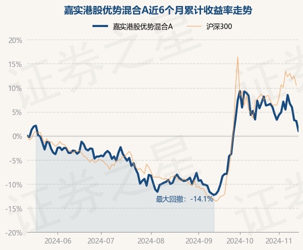 证券之星消息,11月14日,嘉实港股优势混合A最新单位净值为0.8593元,累计净值为0.8593元,较前一交易日下跌2.01%。历史数据显示该基金近1个月下跌6.77%,近3个月上涨12.24%,近6个月上涨1.02%,近1年上涨15.34%。该基金近6个月的累计收益率走势如下图: