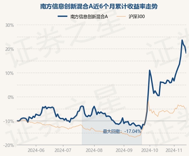 证券之星消息,11月14日,南方信息创新混合A最新单位净值为1.9473元,累计净值为1.9473元,较前一交易日下跌3.27%。历史数据显示该基金近1个月上涨25.33%,近3个月上涨51.04%,近6个月上涨56.55%,近1年上涨15.64%。该基金近6个月的累计收益率走势如下图: