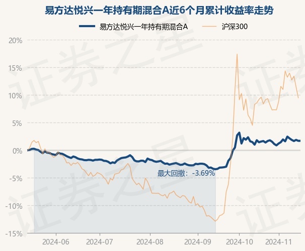 证券之星消息,11月15日,易方达悦兴一年持有期混合A最新单位净值为1.023元,累计净值为1.023元,较前一交易日上涨0.0%。历史数据显示该基金近1个月下跌0.19%,近3个月上涨4.03%,近6个月上涨1.43%,近1年上涨2.9%。该基金近6个月的累计收益率走势如下图: