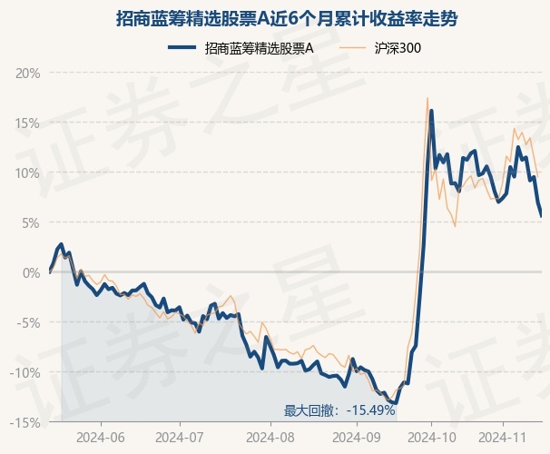 证券之星消息,11月15日,招商蓝筹精选股票A最新单位净值为0.6458元,累计净值为0.6458元,较前一交易日下跌1.22%。历史数据显示该基金近1个月下跌2.95%,近3个月上涨17.06%,近6个月上涨5.63%,近1年下跌1.64%。该基金近6个月的累计收益率走势如下图: