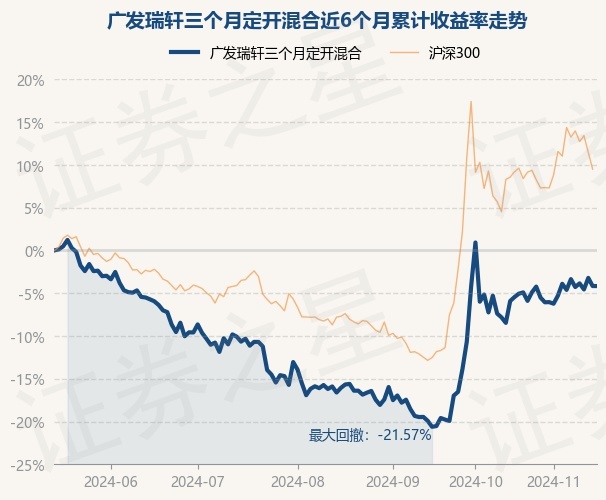 证券之星消息,11月15日,广发瑞轩三个月定开混合最新单位净值为0.5714元,累计净值为0.5714元,较前一交易日上涨0.0%。历史数据显示该基金近1个月上涨1.67%,近3个月上涨12.19%,近6个月下跌5.83%,近1年下跌12.36%。该基金近6个月的累计收益率走势如下图: