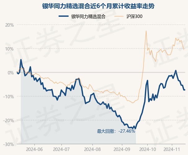 证券之星消息,11月15日,银华同力精选混合最新单位净值为0.8238元,累计净值为0.8238元,较前一交易日上涨0.0%。历史数据显示该基金近1个月上涨3.44%,近3个月上涨5.33%,近6个月下跌8.61%,近1年下跌5.05%。该基金近6个月的累计收益率走势如下图: