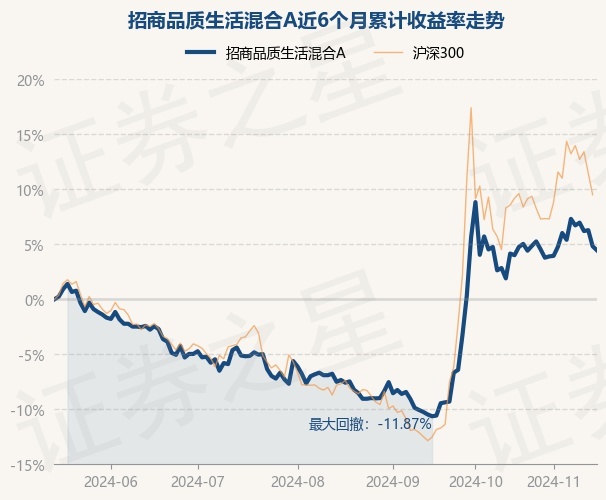 证券之星消息,11月15日,招商品质生活混合A最新单位净值为0.6433元,累计净值为0.6433元,较前一交易日下跌0.36%。历史数据显示该基金近1个月上涨1.77%,近3个月上涨12.72%,近6个月上涨4.45%,近1年下跌1.06%。该基金近6个月的累计收益率走势如下图: