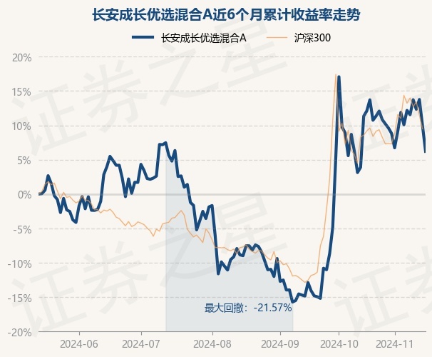 证券之星消息,11月15日,长安成长优选混合A最新单位净值为0.5401元,累计净值为0.5401元,较前一交易日下跌3.45%。历史数据显示该基金近1个月上涨0.02%,近3个月上涨16.68%,近6个月上涨6.21%,近1年上涨4.01%。该基金近6个月的累计收益率走势如下图: