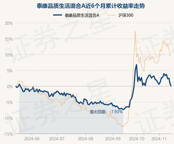证券之星消息,11月15日,泰康品质生活混合A最新单位净值为1.115元,累计净值为1.115元,较前一交易日下跌0.65%。历史数据显示该基金近1个月下跌0.32%,近3个月上涨5.47%,近6个月下跌0.04%,近1年上涨8.31%。该基金近6个月的累计收益率走势如下图: