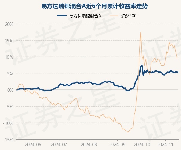 证券之星消息,11月15日,易方达瑞锦混合A最新单位净值为1.2473元,累计净值为1.2873元,较前一交易日下跌0.03%。历史数据显示该基金近1个月上涨0.14%,近3个月上涨3.24%,近6个月上涨5.33%,近1年上涨10.66%。该基金近6个月的累计收益率走势如下图: