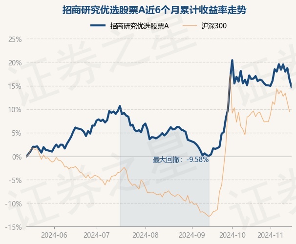证券之星消息,11月15日,招商研究优选股票A最新单位净值为1.2565元,累计净值为1.2565元,较前一交易日下跌1.43%。历史数据显示该基金近1个月下跌0.72%,近3个月上涨9.38%,近6个月上涨14.67%,近1年上涨21.33%。该基金近6个月的累计收益率走势如下图: