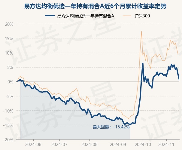 证券之星消息,11月15日,易方达均衡优选一年持有混合A最新单位净值为1.0552元,累计净值为1.0552元,较前一交易日下跌1.81%。历史数据显示该基金近1个月上涨1.92%,近3个月上涨14.3%,近6个月上涨0.67%,近1年上涨2.44%。该基金近6个月的累计收益率走势如下图: