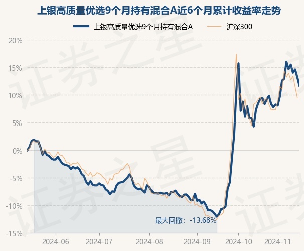 证券之星消息,11月15日,上银高质量优选9个月持有混合A最新单位净值为0.6777元,累计净值为0.6777元,较前一交易日下跌1.37%。历史数据显示该基金近1个月上涨5.58%,近3个月上涨20.78%,近6个月上涨11.67%,近1年上涨11.96%。该基金近6个月的累计收益率走势如下图: