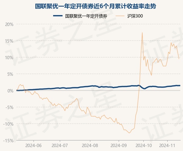 证券之星消息,11月15日,国联聚优一年定开债券最新单位净值为1.0345元,累计净值为1.1011元,较前一交易日上涨0.01%。历史数据显示该基金近1个月上涨0.28%,近3个月上涨0.41%,近6个月上涨1.45%,近1年上涨4.13%。该基金近6个月的累计收益率走势如下图: