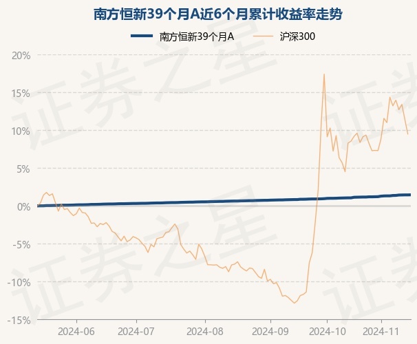 证券之星消息,11月15日,南方恒新39个月A最新单位净值为1.0395元,累计净值为1.1935元,较前一交易日上涨0.01%。历史数据显示该基金近1个月上涨0.42%,近3个月上涨0.81%,近6个月上涨1.46%,近1年上涨2.6%。该基金近6个月的累计收益率走势如下图: