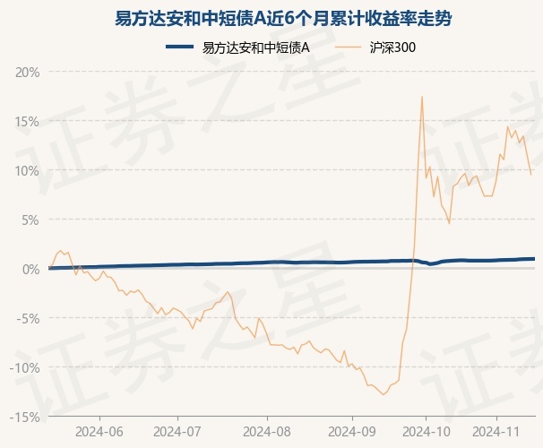 证券之星消息,11月15日,易方达安和中短债A最新单位净值为1.0696元,累计净值为1.1196元,较前一交易日上涨0.01%。历史数据显示该基金近1个月上涨0.23%,近3个月上涨0.35%,近6个月上涨0.94%,近1年上涨2.85%。该基金近6个月的累计收益率走势如下图: